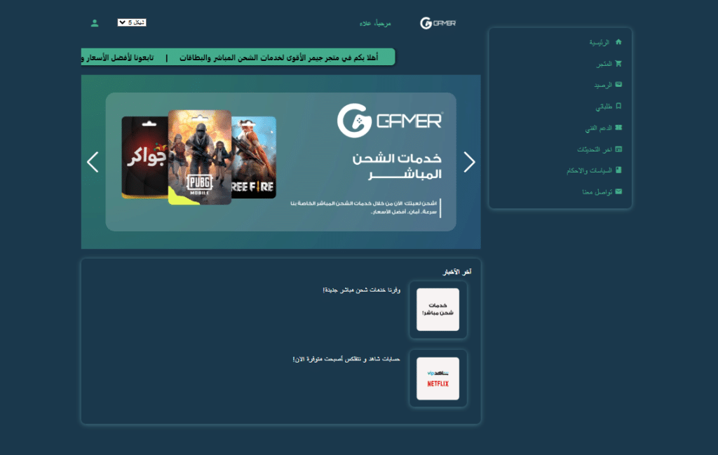 تقدّم المنصة تجربة سهلة وسريعة لشحن الألعاب العالمية مثل PUBG، Free Fire، PlayStation، Xbox وغيرها، بالإضافة إلى بطاقات الهدايا والإشتراكات المتنوعة مثل iTunes، Google Play، Netflix وغيرها من الخدمات الرقمية.